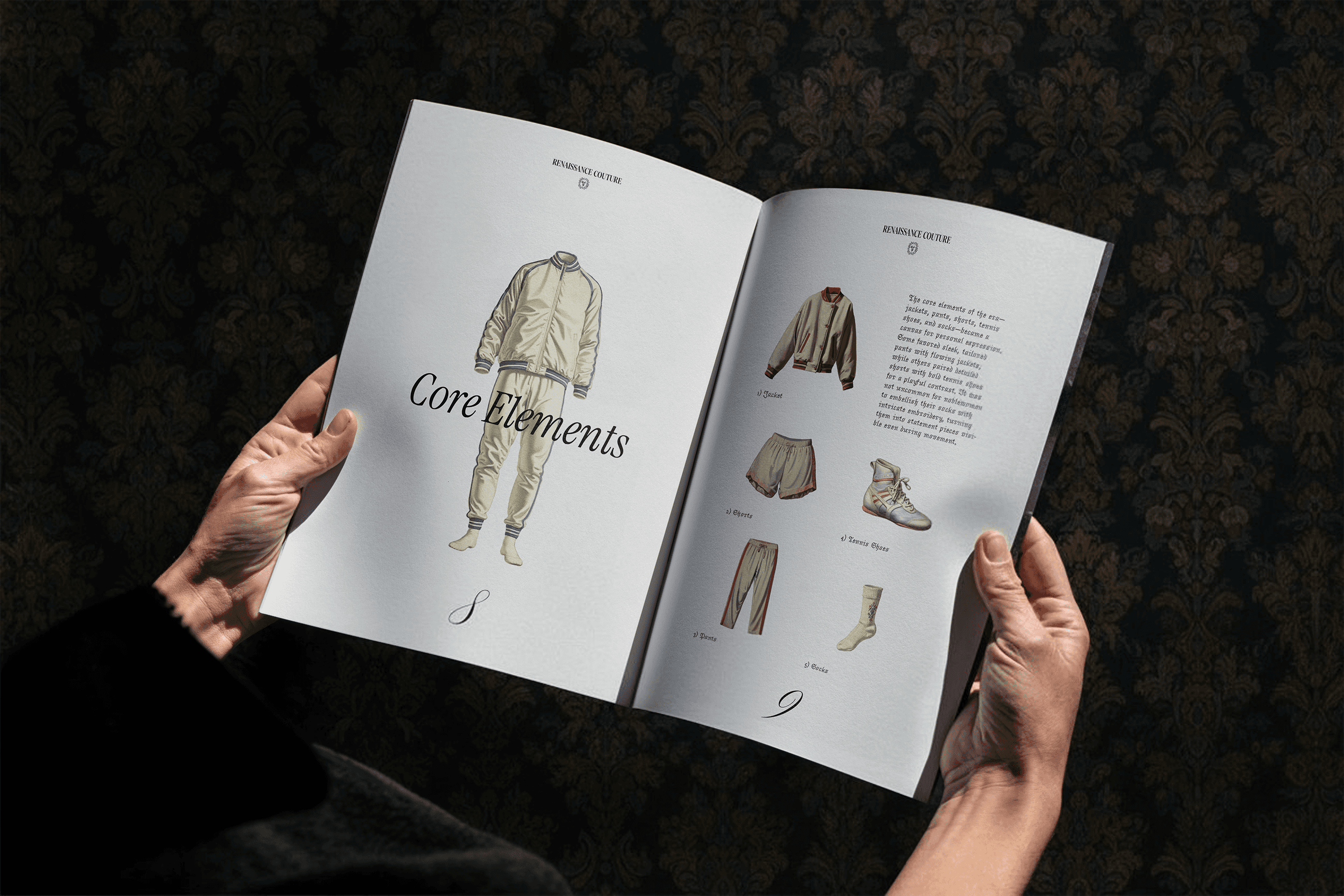 Renaissance Couture is a fanzine that imagines a world where sportswear existed in the Renaissance era. It reinterprets athletic clothing through the lens of the period’s rich opulence and dramatic style. The project became a playful experiment—testing how the model interprets the artistry of the Renaissance.